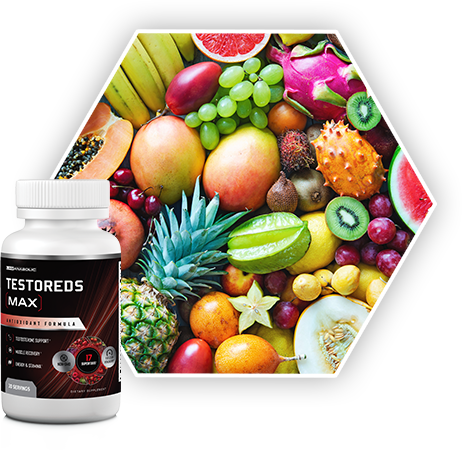 Organic air dried tomato, organic banana, organic blueberry, prune, grapefruit, elderberry, dried strawberry, cranberry and more. Each capsule of TestoReds MAX is jam packed with health, immunity, and longevity boosting fruits that you might be hard pressed to get in a typical diet.†